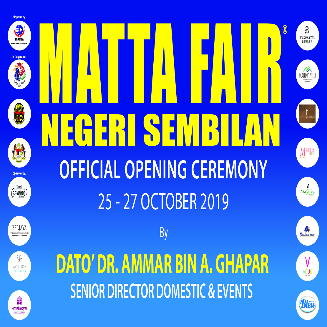 MATTA FAIR NEGERI SEMBILAN is return 25 - 27 October 2019 The much awaited MATTA FAIR NEGERI SEMBILAN on 25 - 27 October 2019 at the Palm Mall, Seremban Many exciting activities are waiting for you !! See you at MATTA FAIR NEGERI SEMBILAN